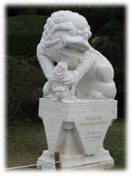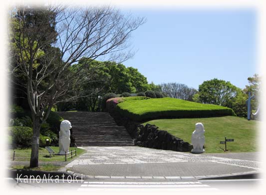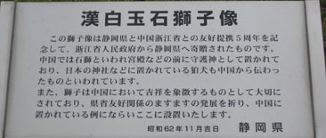 北側の駐車場に車を止めて、公園の入り口に向かうと白い獅子像が出迎えてくれます。(正式な名は「静岡県立美術館」内公園?)