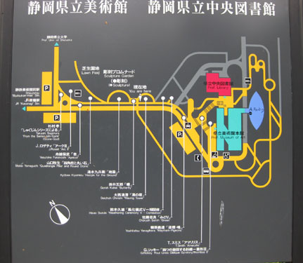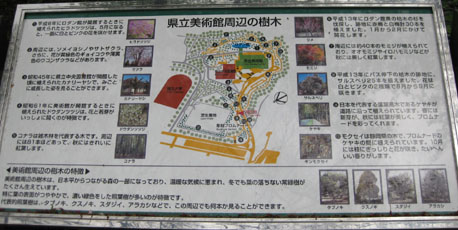 少し進むと美術館の公園内に展示されている作品郡のマップと樹木紹介の案内が置かれています。