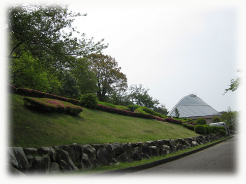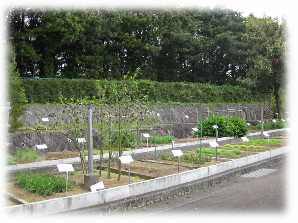 真っ直ぐ進むとテニスコートの向こうに薬用植物園があります。