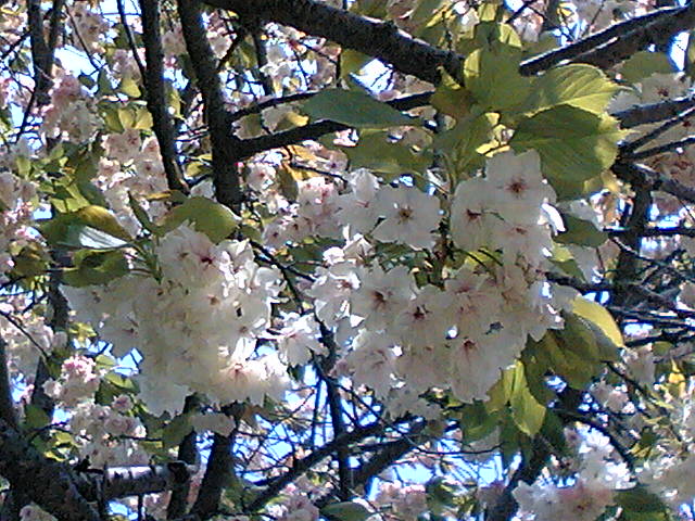 ほかの八重桜より色が緑に近いので、樹が並んでると色が薄いのに気が付きます。