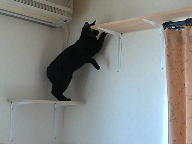 ただ・・・私の部屋は壁が少ないので(ってか壁には本棚が埋まってるからなんだけど・・・(ノω`*))猫の額のような壁に猫の道を・・・。