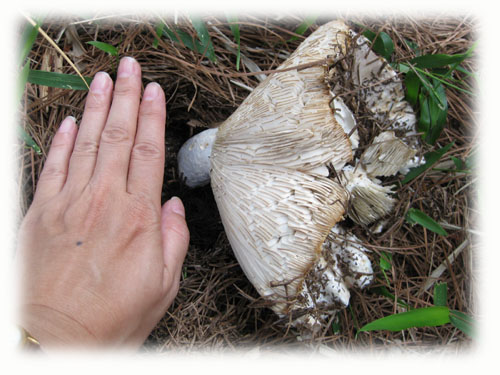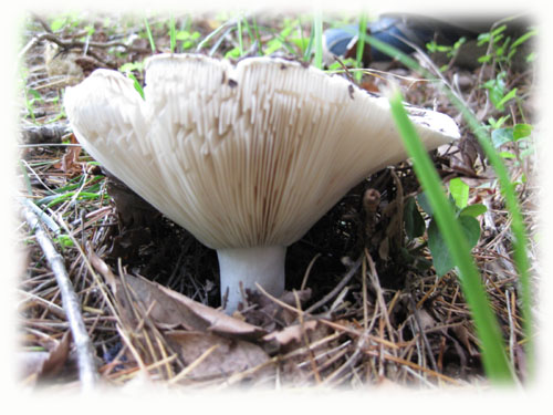 これも上のと同じ場所に生えてたんだけど、こっちはどっしりとしてて、高さは無かったけど同じ白いキノコです。