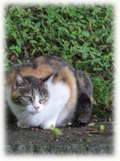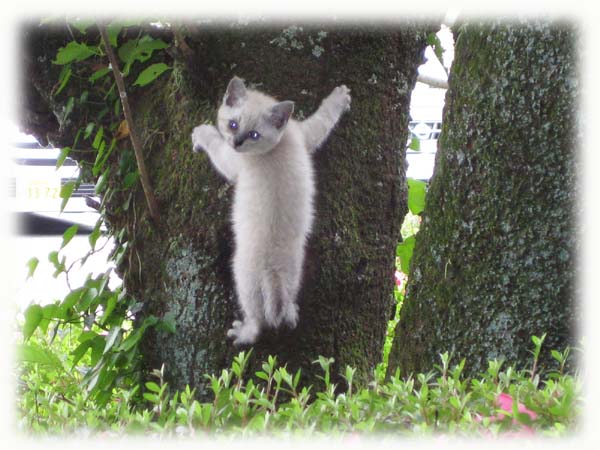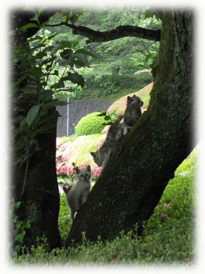 捕まえようにも庭木がじゃまで手も届かず、そしてノラとして育っているようですばっしこい。